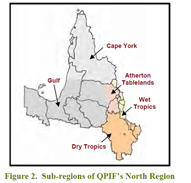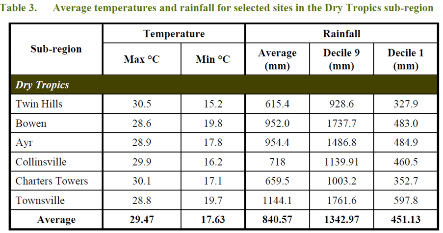 • Dry Tropics – includes Burdekin, Townsville, and Charters Towers